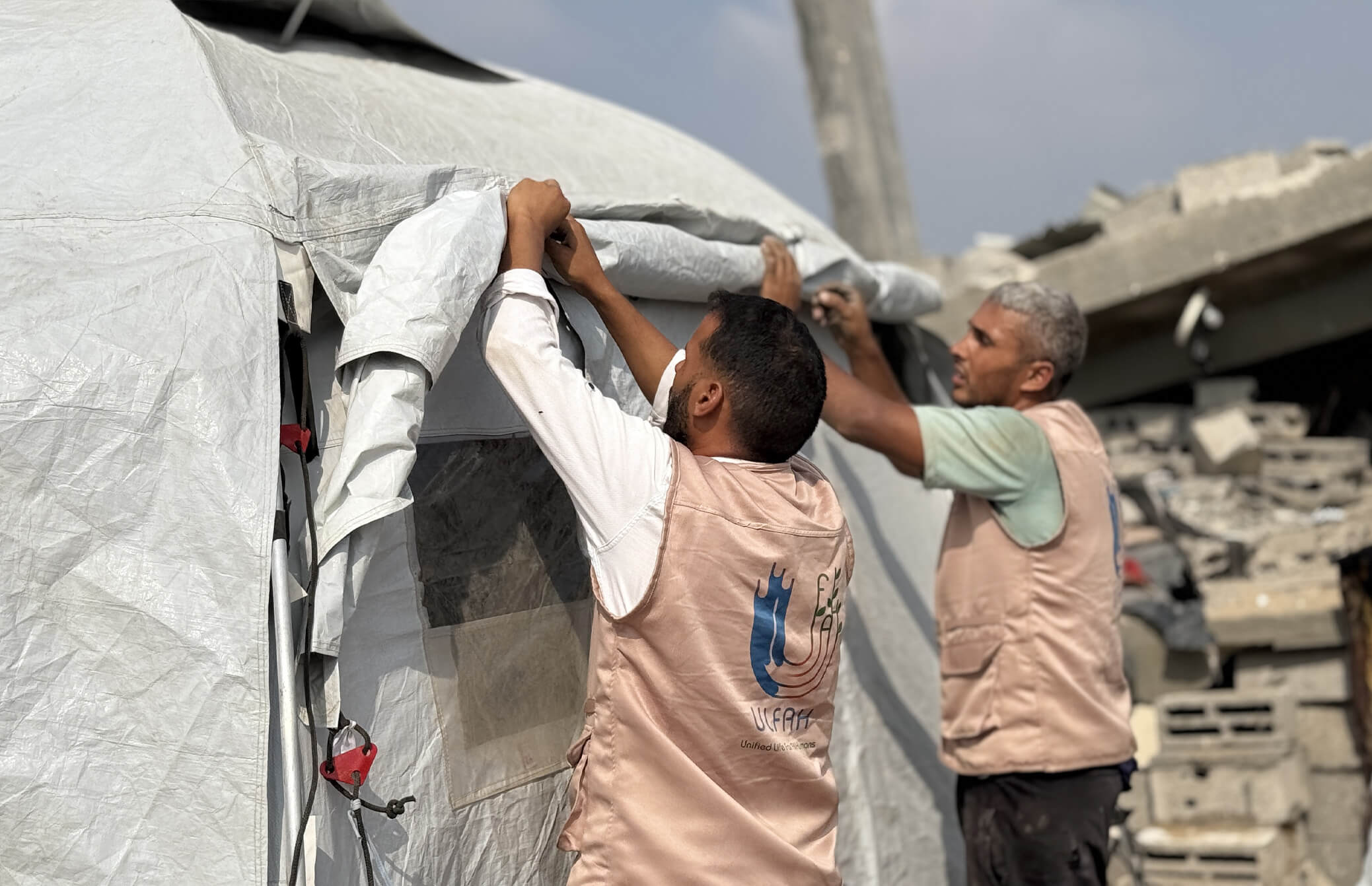 Met grote tenten bieden we gezinnen hun eerste veilige schuilplek. Een plek waar ze samen kunnen zijn, beschermd tegen weer en wind, en waar ze weer even mens kunnen zijn.